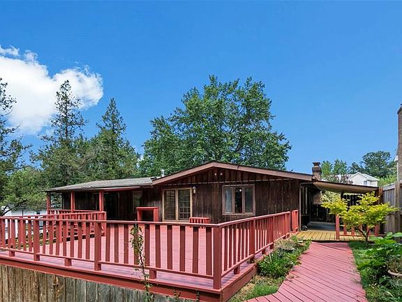 The kitchen features a vaulted ceiling, a breakfast bar, and flows seamlessly into a separate dining area with exposed beams, a skylight, and built-in shelving. This home features three comfortable bedrooms and a versatile layout.