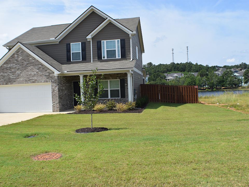 For a viewing of this home, please call 706-225-8455 to schedule a time 24/7 convenient for you right from your smart phone. Happ is not accepted for this house. Like New - Very immaculate 2 story home with 4 bedrooms and 2.5 baths and 2 car garage. Dog friendly with prior approval and non-refundable pet fee. NO cats please Gorgeous LAKE FRONT lot with fenced in backyard. Large screened in sun porch over viewing the lake which is also suitable for fishing. The main floor features a formal dining room, beautiful kitchen with dark stain cabinets and granite counter tops and sparkling stainless steel appliances, a breakfast area and bar, pantry, a half bath, large closed off storage area and of course a beautiful living room with views to the lake as well. Stairs will lead you to the upper level where you will find all 4 bedrooms, 2 baths and laundry room. The master bedroom features a grand double entry door and a luxurious master bath with double vanity, super size shower and garden tub; the large walk in master bedroom closet leaves nothing to be desired either. All bedrooms have ceiling fans, all counters are granite and all windows have plantation blinds. The entry door has a digital entry code and so does the garage. An alarm is already present, but tenant will have to get service if they desire to have an alarm service. A Direct TV satellite is also on premises. Quick commute to Ft. Benning.