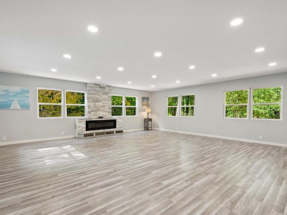 Nestled on over a half acre and surrounded by the gorgeous Indiana Dunes National Park, this nature lovers' paradise is waiting for you to call it home! Beautifully done and completely rehabbed with new windows, led lighting, HVAC, paint and flooring, you'll be wowed from the moment you enter. The enormous living room features a grand electric fireplace fitted for a TV with unbelievable panoramic views. The dining room and kitchen boast new cabinetry with breakfast bar, SS Samsung appliances and quartz countertop. The new main bath is stunning with seated, ceramic shower and rain shower head. The mud room leading downstairs has storage cabinetry and decorative rail. The lower level has a laundry, bath, rec room and second BR. An enclosed porch leads to a patio and multiple expansive outdoor areas. Deep 2 car garage. Secluded yet mere minutes from the Beverly Shores train station and access to I 80/94 makes this lovely nature retreat just what you've been waiting for!