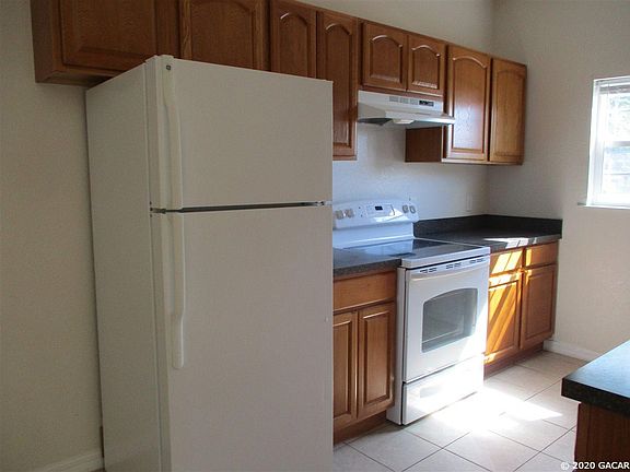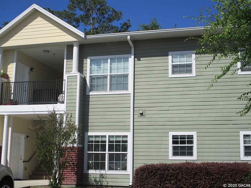 2/2 ( Eagle Trace) Charming, updated townhome. Unit is in a great location, convenient to UF, Shands, schools, shopping & restaurants. Tiled floors in living room, kitchen, dining room and baths. Kitchen has white appliances and updated wooden cabinets. Laundry closet with washer and dryer connections only and storage. Hall bath room with tub/ shower combo. Master bedroom with large walk in closet and full bath with tiled shower stall. Bedrooms are carpeted. Community pool ,club house and gym. 1 small pet only. Est sq ft 1188