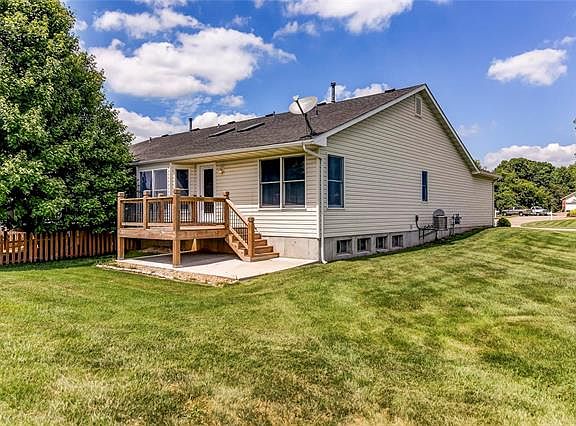 Beautiful Brick & Vinyl Ranch Style villa with 1 bed and 2.5 bath and a large Open floor plan with Skylights, and Dining/Living Room combo. Main floor laundry is right off the front foyer. Custom Kitchen includes new cabinets, granite countertop, a stainless dishwasher, electric range & custom walk-in pantry. Oversized Master Bedroom Suite with Huge closet. Stunning hardwood floors throughout with white trim. Aggregate driveway and sidewalk lead to a covered Front Porch that protects from rain and sunshine then opens into a spacious Foyer. It has a nice sized Two car garage with door opener. Unfinished basement with bathroom is ready for you to expand the living area. Nice deck that steps off into yard is ready for your BBQ grill and entertaining. Easy to show and ready to move in. $150/month for villa fees, $350/year for subdivision fees.