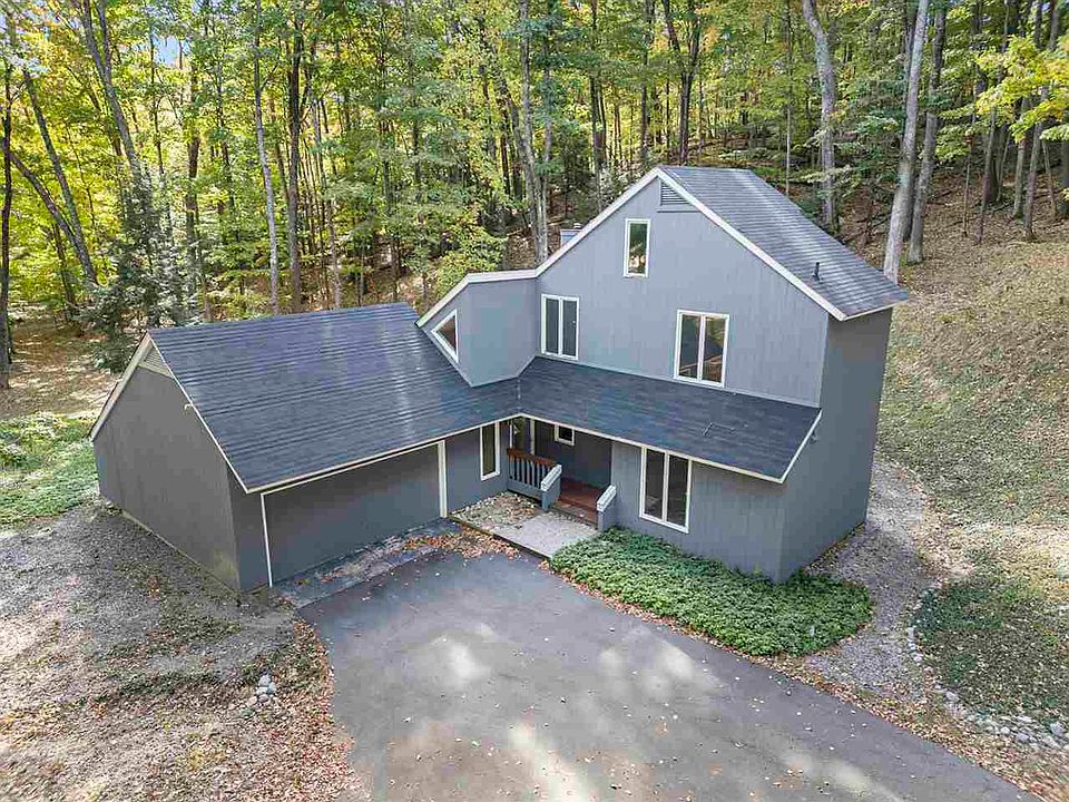 This mid-century modern Birchwood Farms Golf & Country home has an open floor concept that is ready for your "touch." The home's flow is great for conversation from the living room, dining area & kitchen. The "wall bar" cabinet is handy for entertaining & enjoying guests' conversation. Just off the great room is a welcoming side deck overlooking all nature has to offer. A pot-belly stove offers an inviting, warm atmosphere for those cold winter nights. The primary bedroom & bath are steps away on the main level. You will find a second bedroom, full bath, and a loft upstairs. The basement is partially finished. There is a two-car attached garage. The roof is a year old, and the circle drive was paved within the last 18 months. This can be a great weekend getaway. Birchwood amenities include 27 holes of outstanding golf, a large pool, 10 tennis courts, 4 Pickle-ball courts, Bocce Ball, a playground area, a fitness center, and various dining facilities. The home is being sold "as is."