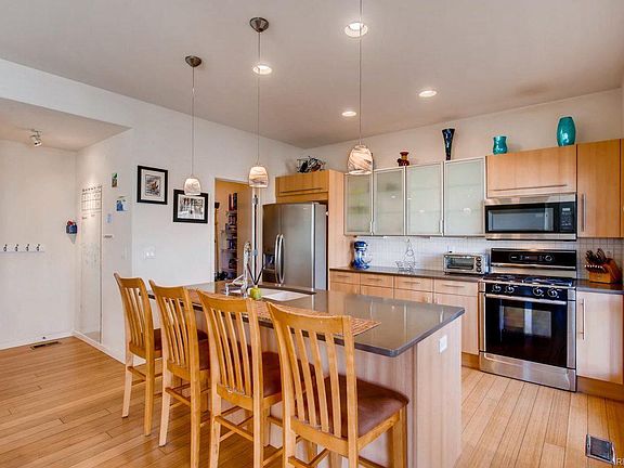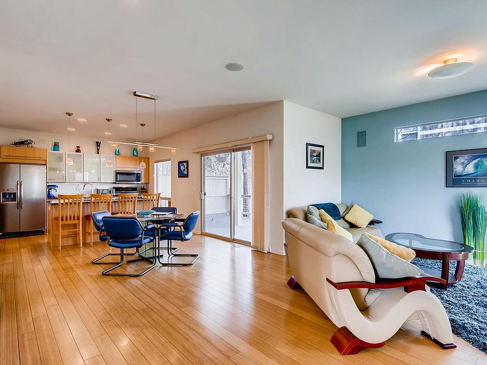 Sleek & Modern, Fantastic Light, Great Layout, Upgrades. 3/4 bedrooms (gym could be converted to 4th), upstairs office, 3.5 bath, 2,811 Total sqft (2,577 + 234 finished gym), 2 living rooms both w/ Klipch surround sound, private yard, patio decks on both bedrooms, upscale modern kitchen w/ gas stove, quiet dishwasher, high end lighting w/ dimming energy efficient bulbs, whole house humidifier, security system, 9 ft+ ceilings, Vaulted Master, Tankless Hot Water Heater & many more features.