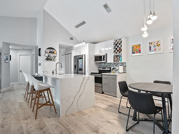 Freshly renovated 3-bed, 2-bath condo in a secure, gated Kendall community with resort-style amenities. Features an open-concept layout with soaring vaulted ceilings, chef's kitchen with marble waterfall island and stainless appliances, new luxury vinyl plank flooring throughout, updated bathrooms, in-unit washer/dryer, and private balcony with greenery views. Community offers pool, fitness center, tennis court, basketball court, kids' playground, and 24/7 gated security. Minutes to Dadeland Mall, Miami Zoo, Metrorail, top-rated schools, Turnpike & US-1. Move-in ready December 18th.