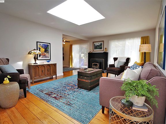 O.H. 8/20 1-4pm. Move in ready best describes this Charming Village Rancher. This spacious three bedroom, two full bath home includes 1256 square feet of spacious living, situated on a 5000 square foot lot. Features include original hardwood floors throughout, flanked by two new sliding doors on each side is the beautiful wood burning fireplace with a stove insert, great size living room with skylight for added natural light, fresh paint throughout home the entire interior, galley kitchen features stainless appliances, granite counters, cherry cabinetry and two sun tunnels, adjacent dining area is spacious, perfect for large family dinners or entertaining, primary bedroom with updated bath and large closet, dual pane windows, central heat, brand new roof, irrigation well, backyard Tuff Shed style storage can be used a home office, home gym etc. Walking distance to schools, KIPP Academy, Bay Trail and transportation. This is a must see!