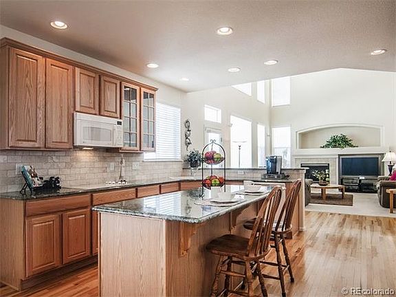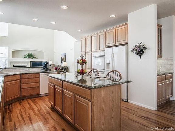 Extravagant home located in Ryan Ranch w/ incredible views of the Front Range!! This home is enhanced w/ sweeping spiral staircase & designer upgrades throughout!The great room showcases vaulted ceilings, surround sound & Navajo neutral wall colors. The entertainers kitchen boasts 42" maple cabinets w/ crown molding & slab granite countertops including tumbled stone backsplash. A butlers pantry, pocket office, roll out cabinets & matching tawny colored appliances, this home is a chefs dream! Gleaming hardwood flooring adds persuasive elegance. Upstairs, french doors lead to the master suite w/ an exquisite double sided fireplace w/ Etolia ceramic tiling that amplifies the 5 piece master bath w/ jetted tub, dual sink vanity & walk in closet w/ storage island. Enjoy the Colorado sunsets from your walk out basement or extended deck. Wonderful low maintenance yard! Miles of trails span the area w/ shopping & entertainment nearby including Colorado Mills. Great access to Golden & Boulder!