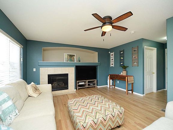 Beautiful two story home on cul-de-sac in Buffalo Mesa! Walk to Second Creek Open Space and just a few minutes drive to Barr Lake! New interior paint throughout with main floor featuring light and bright living room that opens to dining room for easy entertaining! Gourmet kitchen includes 42" maple cabinets, new stainless steel appliances, wood floors, recessed lighting, eating space and access to back patio. Family room has gas fireplace with tile surround and a ceiling fan. Powder room and laundry room also on main! Huge loft upstairs, perfect for work or play. Master bedroom suite has vaulted ceiling in the bedroom, walk-in closet and a private, 5pc bathroom. 3 additional bedrooms share another full upstairs bathroom. Unfinished 960sf in basement allows for further expansion! Relax out back on the paver patio! Home backs and sides to greenbelt! Fantastic location with assigned schools bus stop on same street, near Reunion rec center with tons of activities, shopping, restaurants, parks and open space!