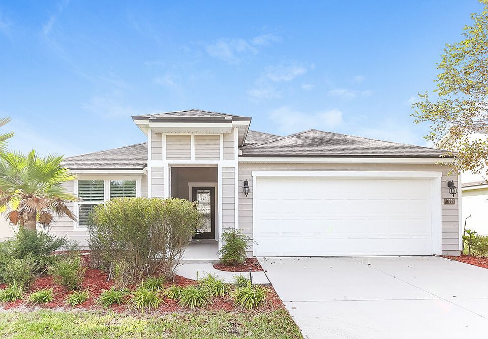 Please note, our homes are available on a first-come, first-serve basis and are not reserved until the lease is signed by all applicants and security deposits are collected. This home features Progress Smart Home - Progress Residential's smart home app, which allows you to control the home securely from any of your devices. Want to tour on your own? Click the "Self Tour" button on this home's RentProgress. You'll find plenty to love about this four-bedroom and two-bathroom rental home in Jacksonville, FL. Featuring an attached garage, a covered front entry, and excellent landscaping, this 1,822-square-foot smart home is single-story beauty. The open-plan living room has neutral-colored walls and a lighted ceiling fan. An oversized center island divides this space from the kitchen, where you'll find recessed lighting, lots of storage space in the walk-in pantry, and gorgeous granite countertops. A luxurious en suite bathroom awaits you inside the primary suite. It has a garden tub and a walk-in shower with a tile surround. Plus, you'll have plenty of space to spread out over two vanity sinks. Finally, enjoy the fresh Florida air underneath the shade of the covered porch. Call today to book your tour.
