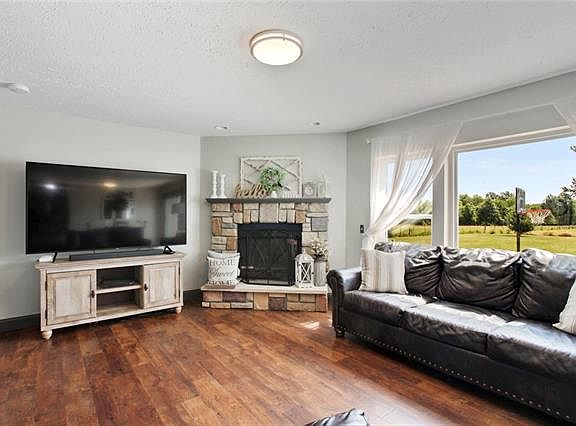 NICE COUNTRY HOME - Large windows in living room, kitchen and master bedroom. Stainless appliances. Lots of cabinets in kitchen. 32'x21' patio off o dining room. Fireplace in living room. Oval tub in master bath. Large storm shelter behind outbuilding accommodates 13-18 people. New roof in 2020. Outbuilding approx. 36'x36' with 2 unit heaters - mini split condenser - cools and heats. Concrete floors and spray foam insulation. 2021-06-17
