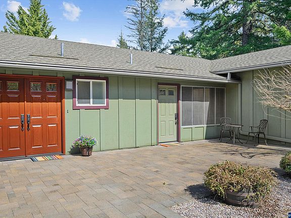 Amazing, private, mid century home! Vaulted living & dining have exposed beams. Solid oak floors run thru most of the living space. Updates to all 3 baths plus a revamped kitchen! An expansion to the en suite primary included a full tile no step shower & double closets. Many options w/additional flex rooms, currently used as a family room, a workout room & huge storage room! Double car garage & attached shop w/rollup door. Lovely landscaping w/fully fenced backyard. New roof in '19 & LeafGuard gutters!