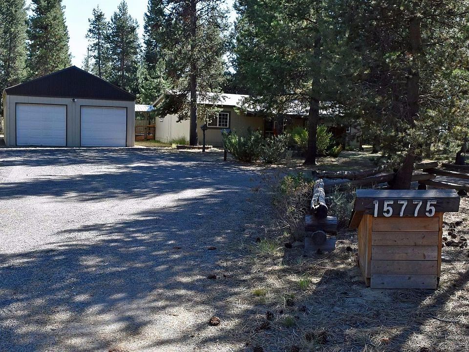 Take a look at this 3 bedroom/2 bathroom manufactured home in a lovely wooded setting on .98 acre. Enjoy coffee & viewing wildlife on the large covered front deck or open back deck. Keep your toys safe in the 24 x 36 detached garage with workshop area & wood storage. Extra storage building in backyard. Yard has fencing which can be adapted to new owner's needs. Circular driveway. Freshly painted interior. Room for RV parking. Close to La Pine shopping & Central Oregon hiking, fishing, boating, & camping.