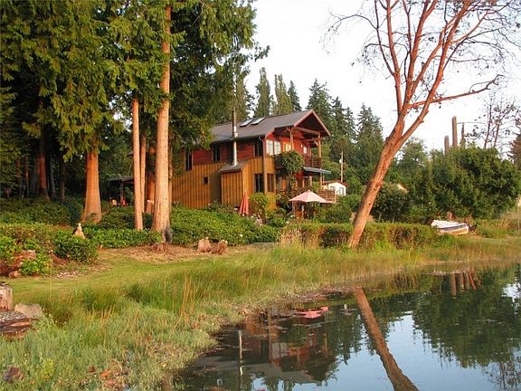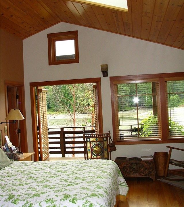 Low bank waterfront with Western exposure. Custom craftsman design, oak wood floors throughout, and all wood windows. Wrap around porch, plus two decks. Metal roof. Tropical wood built-in book cases. Granite kitchen counters. River rock fireplace. Outdoor hot/cold shower.