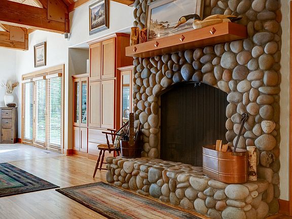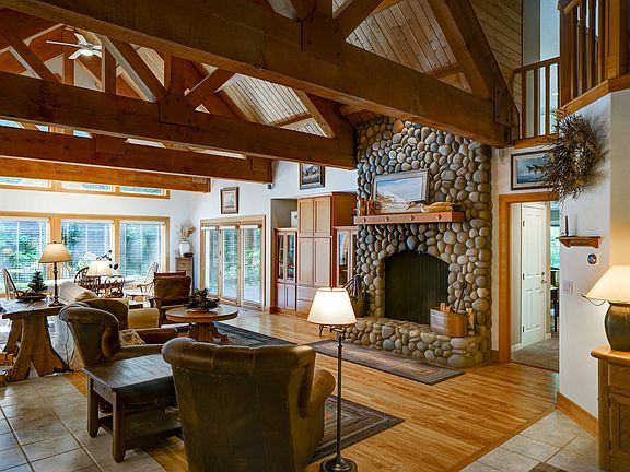 The forest estate of your dreams. Come experience this private, majestic home nestled in the woods. Sitting on 65 acres, this home features a long private driveway, essentially fully paved, up a serene journey through the peaceful trees. Once you arrive at the home, you are greeted with an incredible garden. Proceed in to the lodge style home complete with a Rumsford fireplace, Ash flooring, office, den, loft & a master-suite with 2 bathrooms. 3 bay shop, water feature, patio & more just waiting for you.