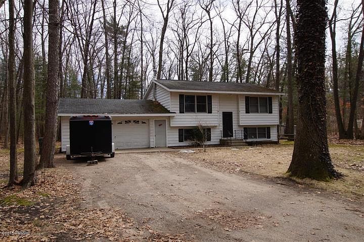Reeths Puffer, 1.7 acres, wooded, and private. This four bedroom home sits back off the road for complete privacy. Two bedrooms up, two bedrooms down, two full baths. Lower level family room is currently being remodeled. Two stall attached garage.