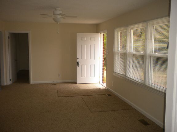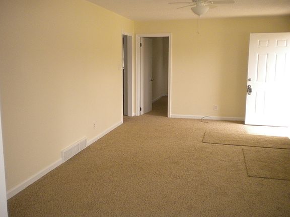 New carpeting and grouting in the kitchen. Washer and dryer is located in the kitchen and come with the property. There is a front porch area that would allow for some outdoor furniture. Large living room; left side leads to the kitchen and dining room, right side leads to one bedroom or the hallway. Door in the dining room leads to another bedroom which also has an access door to the hallway with a full bath. Past the bathroom is the third bedroom. No pets, no smoking.