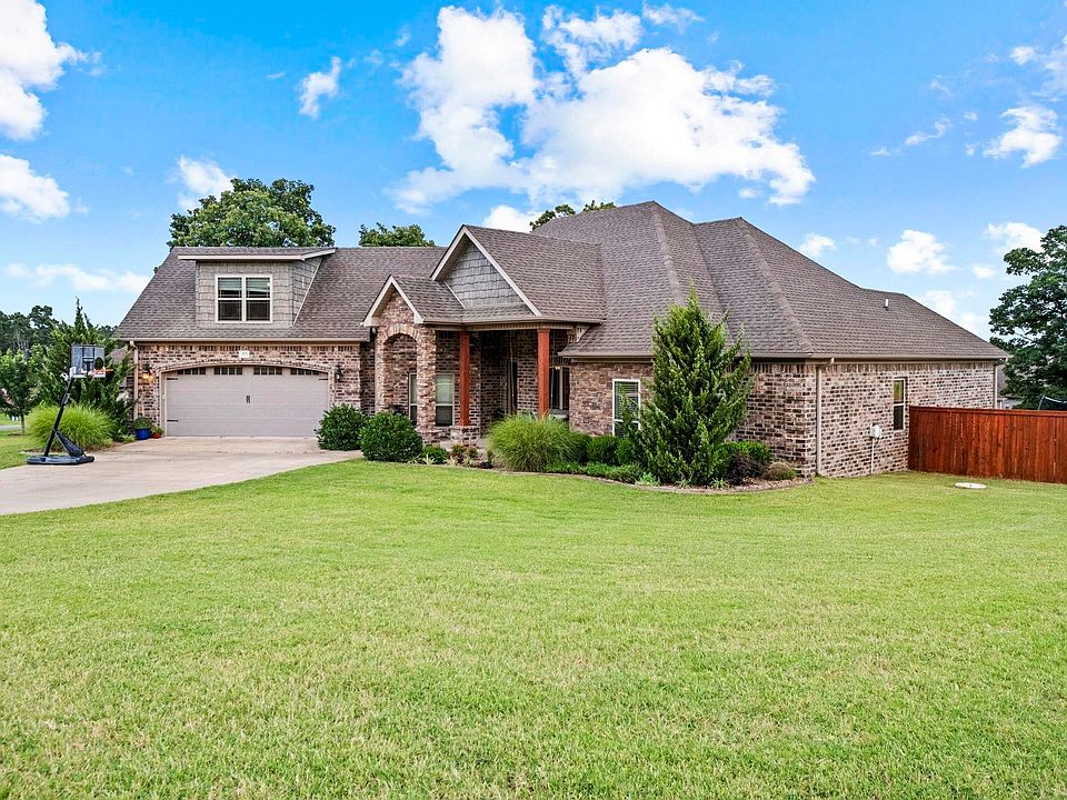 Exquisite home! Beautiful hardwood floors. Open floor plan with a 2-sided rock fireplace & crown molding. Eat-in kitchen has large island, stainless steel appliances, custom cabinets, granite, gas range, walk-in pantry. Large mstr has double tray ceilings! Mstr bth has gorgeous tile shower & separate jacuzzi tub. Huge mstr closet with built-ins and an island. In addition to the main living areas, this home includes a separate office space, ideal for remote work or study. There's also a versatile bonus room that can be customized to fit your lifestyle—whether it’s a playroom, gym, or guest suit & includes a 1/2 bth. Tankless water heater was serviced and a new neutralizer was installed in 2024. The racking system in garage stays. 2 AC units. Inviting covered back patio with a fireplace and TV. Shades on back patio convey! Installed sprinkler system in 2020. Added concrete decorative border for flower gardens in 2023. Fence re-stained & repaired in 2024. All these exceptional features, this home is not only a place to live but a place to thrive. Don’t miss out on this incredible opportunity in a fantastic neighborhood!