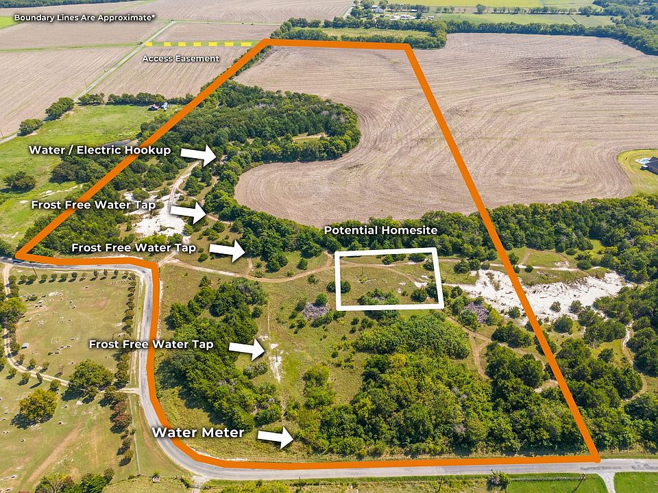 Tucked away just 15 minutes from Sherman, this 44.169-acre of ag-exempt property offers a rare blend of natural beauty and ready-to-use improvements. Imagine building your dream home on the highest point, where sunsets spill across rolling pastures, ponds, and a distant church steeple. With over 1,300 feet of road frontage and 3 miles of winding trails, the land invites exploration and peace in equal measure. A finished cabin with full utilities, bath-kitchen space, lofts, and a covered porch is already in place, along with a powered shipping container, upcoming shed, picnic area, and multiple water access points. Whether you’re seeking a private retreat, weekend getaway, or a forever homestead—this land is more than just property. It’s a place to write your next chapter.