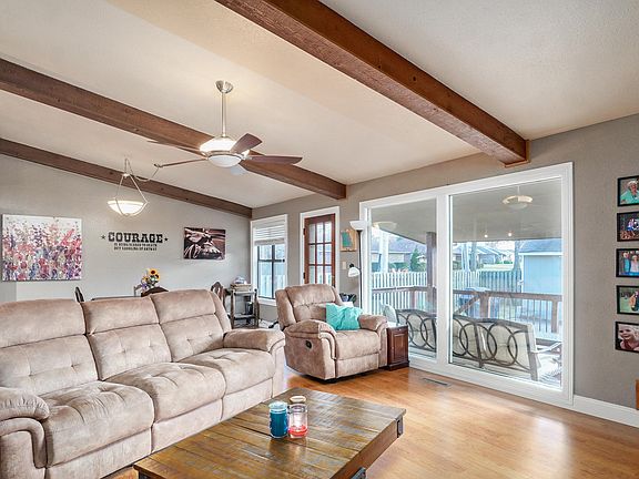 This beautiful 3 bedroom 2 bath home is in an excellent location close to shopping and restaurants!! The living room greets you with a corner gas fireplace, vaulted ceilings, wood beams, and a huge window overlooking the covered deck. The bedrooms are spacious with lots of closet space. Master bedroom features a separate shower and large tub. The backyard has a storage shed with privacy fence. Put this on your ''must see'' list today!!