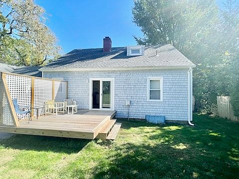Spacious Cape Cod duplex has two bedrooms, full bathroom, large eat-in-kitchen, living room on first floor, large open office/loft with half bath on second floor is available for yearly rental. Sliders to private west facing deck to take in beautiful sunsets, nice yard and pastoral views! Located in Southern Portsmouth, close to McCorrie Point Beach, shopping, restaurants and and easy drive to Newport Naval Base. Utilities are included with monthly cap. Electric and water are included with cap. Tenant responsible to pay gas heat, internet and cable, responsible for snow removal. Can be rented furnished, unfurnished, partially furnished.