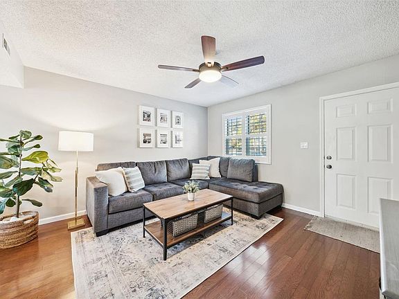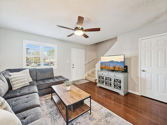 This amazing townhouse style condo features many updates including newer hardwood floors in the living and dining room, 6 panel doors, and plantation shutters throughout. The bathroom was completely remodeled with custom tile work, new vanity, fixtures, and rustic tile flooring. It has an updated kitchen with white cabinets, quartz counters, stainless undermount sink, stainless dishwasher, flat surface stove, Whirlpool side by side stainless refrigerator, and subway tile backsplash. The washer and dryer are located on the 2nd floor. It has convenient off street parking near the front door and a private fenced concrete patio opening to nice level common ground. Additional amenities include: TWO pools, tennis courts, walking trails, and beautiful common grounds including the large lake and clubhouse. Location: End Unit
