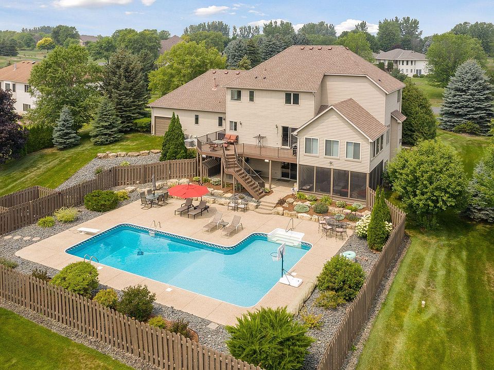 Beautifully updated Shakopee home on 2.5 acres has wonderful spaces to enjoy the outdoors including a sunroom, screen porch, large maintenance-free deck, firepit and 43,000 gallon in-ground heated pool w/ 2000 sf exposed aggregate patio. This 4200+sf home has 3 bedrooms as well as an office and flex room, and 4 bathrooms with attached 3+ car garage. Additional 70x26 garage has heat/ac and offers infinite possibilities for sports, hobbies or working from home.
