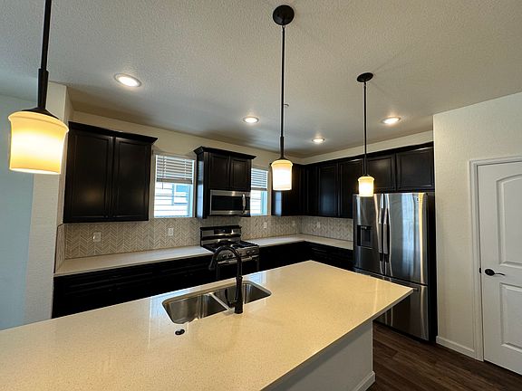 Located right in the heart of the new developments off of I-25 and Interquest Pkwy. New 3 bedroom 2.5 bath end unit townhome features large Master Bedroom with a large walk-in closet, and dual vanity bathroom. Nice sized Jack and Jill bedrooms with an attached bathroom. Cozy open office space located upstairs. A 2-car garage and an enclosed courtyard at entry(great for walking or taking pets outside). Great open space in the main living area with a gorgeous island and spacious pantry in the same space. The Laundry is conveniently located on the second floor. Very short distance to movies, Restaurants, Top Golf, iFly, Indoor skydiving, Boot Barn Concert Hall, Promenade Shops, Gyms, and so Much more. No smoking. Renters pays utilities. Owner pays HOA & Trash. Electric car charging in the garage. Hablo Espanol! No minimum or minimum credit score required, depending on other factors!!