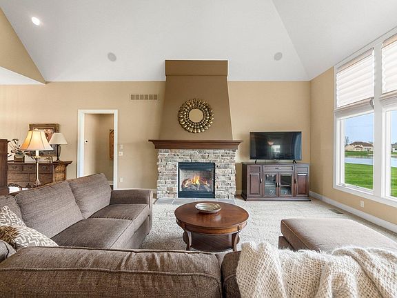 This meticulously maintained home in Bridgewater subdivision offers the perfect combination of luxury and comfort, with stunning curb appeal and panoramic pond views. Situated on a prime pond lot in a peaceful neighborhood. As you enter through the grand foyer, you’ll be greeted by soaring ceilings and dramatic architectural details in the great room. The space is both inviting and elegant, with a beautifully designed fireplace, making it the perfect place to unwind. Large rear facing windows flood the space with natural light, creating a bright and airy atmosphere, while automatic power blinds offer convenience and control over light and privacy. The open-concept design flows effortlessly from the living room into the chef’s kitchen, where no detail has been overlooked. Featuring high-end appliances, custom cabinetry with slow-close drawers, and a massive island with a separate serving bar, this kitchen is truly a centerpiece for both entertaining and daily life. Natural light pours into the space through expansive windows, brightening the breakfast nook and enhancing the home’s welcoming feel. Tucked away for privacy on the first floor, the primary suite offers a tranquil retreat with breathtaking pond views from the oversized window. Walk in to the en-suite bathroom showcasing stylish ceramic tile floors, dual vanities with quartz countertops, a walk-in ceramic shower, and an 11-foot walk-in closet complete with built-in organizers. The main floor also features a discretely placed half bath and generously size laundry room with ample shelving space. Head upstairs you’ll find three spacious bedrooms, each offering ample space and comfort. A full bathroom completes the upper level, ensuring convenience for all. The finished basement is a true standout, featuring a 3-D theater room, perfect for movie nights, a workout room and a full bathroom for added convenience. A large utility and storage room offers plenty of space, with the potential to finish the area for even more living space. Unwind and entertain on the back stamped concrete patio, where you can enjoy tranquil evenings and the generous size back yard, great for activities! This home is an absolute must-see, blending high-end finishes, thoughtful design, and premium upgrades. Don’t miss your chance to own this exceptional property out in Southwest Allen, where luxury and lifestyle come together.