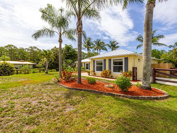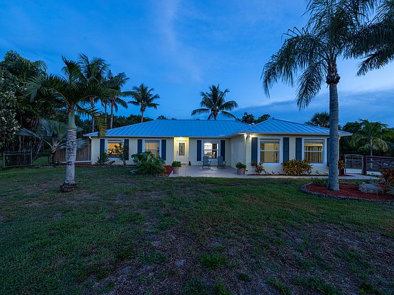 Best location in Jupiter Farms - CORNER 0.98-acre lot with a POOL, 2025 METAL ROOF, whole-house GENERATOR, and NO HOA! Zoned for A-rated schools, this updated 5 bed, 2 bath home blends comfort and style with plenty of space inside and out. The gourmet kitchen features stainless steel appliances, quartzite countertops, white cabinetry, RO water system, and a pantry. Wood-look tile runs through the main living areas, with laminate in the bedrooms. The primary suite includes a walk-in closet and a bathroom with granite vanity, shower, and linen closet. There's also a laundry closet with a full-size washer and dryer. Enjoy a serene oasis on the covered, screened-in patio by a refreshing pool. Other highlights include freshly painted exterior (2025), newer well pump (2023), gas tank, 2020 water heater, chicken coop (converted carport), storage shed, new sod, and a stand-alone Jacuzzi. The home is conveniently located to the lively Abacoa and Harbourside with great restaurants, shops, and live entertainment. It is only 15-20 minutes to the beach and Carlin Park. All measurements are approximate. Take a look at the 3D virtual walkthrough.