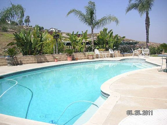 Views from The front porch, formal dining room and rear yards of the inland empire and big bear/mt. Baldy mountains. This single story home has tons of amenities including pool and spa, 2 storage sheds, 2 cabanas, trickling water down below, garden, some r V access for low profile trailers, tile roof, upgraded interior and so much more. There are quiet areas to the rear of the yard where you can see the canyon, birds, boulders and some trickling water in season. This is a keeper.