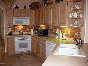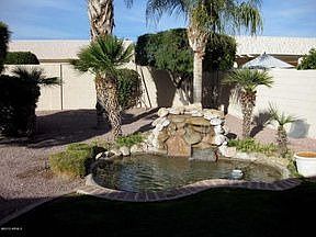 Popular Topaz on lrg home site.Floor tile in kitchen,nook&entry.Corian kitchen counters.Lrg Master bedroom has window wall to backyard,dual sinks & walk-in closet.Enlarged guest room configured as craft room. Den used as bedroom.Lrg backyd with soothing water feature, mature palm & fruit trees.Ext 2-car garage w/golf cart cutout & cabinets All appliances remain.Reduced: $219,000