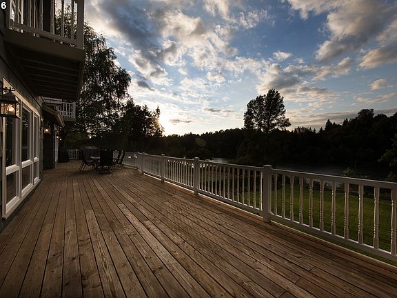 This waterfront home has many updates, large granite kitchen island, double ovens, 2 fireplaces, 4 bedrooms, and 4 bathrooms.With 4000+ square feet of living area. Perfect for entertaining!Incredible Riverview''s from many rooms including the master bedroom with its own fireplace!River access with dock and boat house, equipped with a boat lift.Easy access to I-5, easy access to Aurora airport.