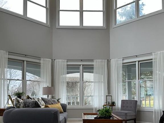 This stunning vinyl two-story home is located in the quiet Granger neighborhood of Brendon Hills. It boasts over 2,500 square feet of living space, with 4 bedrooms, 3 full baths, and 2 half. The wrap-around porch and bay windows create an attractive curb appeal, while the spacious interior is designed to meet all of your needs. As you enter the foyer, you'll be greeted by the stunning two-story formal living room in the tower, complete with an electric fireplace. The main floor ensuite with dual walk-ins provides ample space and privacy, while the open-concept kitchen and living room make entertaining a breeze. The breakfast nook features a tiny porch outside, perfect for enjoying your morning coffee. Upstairs, you'll find additional bedrooms and bathrooms, providing plenty of room for everyone. The partially finished basement offers additional living space, with a family room and laundry area in a half bathroom. The flex room is perfect for a home gym, playroom, or additional entertainment area. The oversized 2-car attached garage provides plenty of space for your vehicles and storage needs. There is nothing left to do except move in! So don't wait - inquire today.