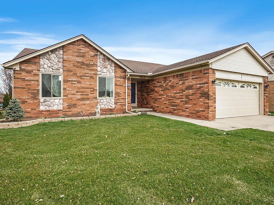Gorgeous updated ranch convenient to schools, shopping and restaurants. From the entryway, you’ll notice the luxury vinyl flooring throughout the first floor, cathedral ceiling in the great room with ceiling fan, gas fireplace and open concept into the completely remodeled kitchen including LaFata cabinets, upper cabinets are 42” with crown molding to the ceiling, huge island with leathered granite countertops, subway tile backsplash, new sink and all new stainless steel appliances. Eating area has a bay window and doorwall leading to the huge backyard. Easement along the back of property goes to the drain, firepit, sprinklers and deck for upcoming summer nights. 2 full completely remodeled bathrooms, master bedroom with cathedral ceiling, walk in closet and shared access to bathroom. Full basement is partially finished, glass block windows and huge storage area. All newer windows and door wall with transferable warranty, all new interior doors, new trim, new custom blinds, all appliances included in sale, occupancy to be around 45 days. You won’t want to miss this one!