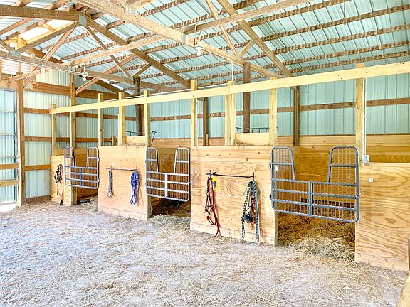 Ideal for horses- Beautiful open floor-plan with this 3 bedroom, 2.5 bath home.There is a 30X48 barn with hot water, stalls, tack room & 4 paddocks.You will enjoy the 1 car detached garage with a over 9 foot door to accommodate your tall truck. 2019 New Roof, 2018 -new furnace, central air & tankless water heater. Cathedral ceiling in great room with gas fireplace. The kitchen has quality wood cabinetry and a pantry closet. There is counter seating and a spacious area for your dining table. 2018- new hardwood flooring in the kitchen, great room, through the hallway and in the bedrooms. Master bath has the tub and toilet in a separate room. Sink is located between the bath tub & the WIC. Spacious laundry room and 1/2 bath at end of laundry room. The sliding door in kitchen leads to the deck for beautiful views of the fenced yard and paddocks. The 2 car attached garage has a portable Hisense AC unit & an interior & exterior kennel with dog run. READY FOR ANIMALS-Call today for your private showing.