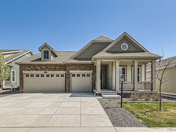 Discover a rare gem at Heritage Todd Creek, a 55+ community. Meticulously maintained home offering the best of both worlds: serene golf course views from the backyard and breathtaking mountain vistas from the front. This stunning residence boasts an open floor plan, perfect for modern living and entertaining, with abundant natural light streaming through custom motorized Hunter Douglas blinds, effortlessly controlled by remote. Artfully designed, the home features dedicated lighting to showcase artwork on the walls, adding a touch of elegance. Impeccably cared for, this property combines luxury, functionality, and an unbeatable location, making it a truly exceptional find. Don’t miss the chance to own this unique treasure!