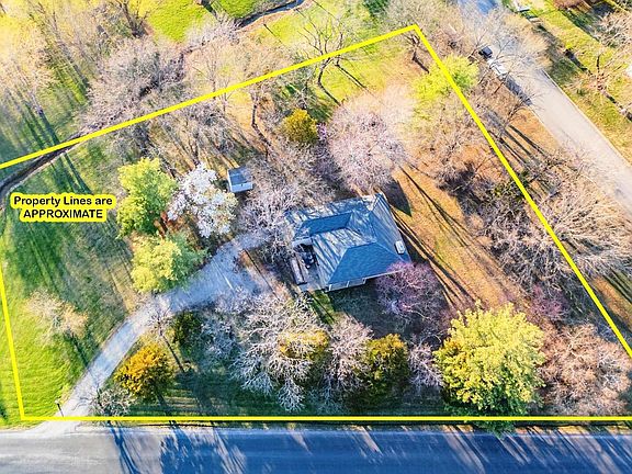 Sprawling 1 acre homesite just on the outskirts of town! Plenty of shade trees and privacy for the country feel but the convenience of a great location. Custom Bedford stone home with open concept kitchen and dining open to the large living room that has a nice stone fireplace with gas insert. Handy workaround kitchen with lots of cabinets and counter space, kitchen appliances included! Extra storage in the 28' garage. Laundry room with half bath and deep laundry sink. Main bathroom has nice updated double-sink vanity. Just in 2025 all new drain lines have been installed under home including main bathroom and laundry room. New vent lines in attic and new vent for washer and laundry sink. More storage in the 2 outdoor sheds - one has electricity and window unit. Covered front porch or side courtyard provide great outdoor sitting areas. Plenty of charm inside and out!