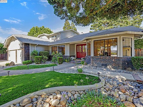 Located in highly desirable Southside Livermore Valley Wine Country. This custom executive home boasts four bedrooms, three full baths with 3,470 sq.ft. The home is designed for family living as well as gracious entertaining with separate formal living and dining room, and huge great room with custom tiled, faced fireplace and wet bar service area. The huge chef's kitchen features extensive cabinetry, granite counters, upgraded stainless appliance package, breakfast bar and spacious breakfast nook. The gracious oversized primary bedroom is downstairs (a rare find) and boasts two walk-in closets, gorgeous remodeled bath with large oval soaking tub, separate shower and dual vanities. Flooring downstairs is all hard surface--wood and luxury vinyl, stairwell and upper areas have brand new lush carpeting. Upstairs are three very spacious bedrooms with updated hall bath. Fabulous lot of 16,642 sq.ft, highlighted by amazing pool, extensive redwood decking with energy efficient spa, pergola for outdoor dining and extensive grounds (new sod), huge side yard access for all those extra toys. Walk to large neighborhood park, excellent elementary school, middle school and high school. Completing the package, three car garage, owned solar and EV charger. It's a one of a Kind!