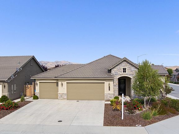 A happy home awaits in Hollister! This Santana Ranch property features a little over 2000 sq ft of single level living space including 4 bedrooms and 2 full bathrooms. The homes floor plan is open and inviting with tall ceilings upgraded flooring, stainless steel appliances in the kitchen, and ample room inside and out to live comfortably and entertain friends and family. Drought tolerant landscaping covers both front and back yards along with fruit and nut trees including pear, Meyer lemon, almond, olive. Large 2 door 3 car garage with extra driveway and street parking. The brand new Santana Ranch Elementary School is in walking distance and the towns amenities are all a short 5-10 minutes drive. Approximately 1 hour away from San Jose Airport or the beaches of Santa Cruz.