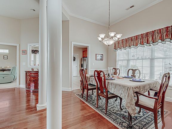 This home is in a great location. Only 5 miles to the beach. Southwood is a golf cart friendly community with 2 pools. Close to shopping and restaurants. This beautiful home has a side load garage with 3 bd / 2bth. The owner's suite has a walk in closet and trey ceilings that make the room feel even larger. Going into the owner's bath you'll see a double sink with vanity, and a separate shower with a jetted garden tub. Some of the best features in this home are the two sided gas fireplace, 10 ft ceilings, dining room, large kitchen with a center island with plenty of room for cooking and entertaining guests. It has stainless steel appliances and a nice sized pantry. Off the kitchen area you can view the other side of the gas fireplace that goes to the other sitting area. From there you will find an all seasons room that leads out to the patio and beautiful back yard. The laundry room is off the kitchen and leads into the oversized garage. The garage has a side entrance door, utility sink, and stairs that lead to the attic. Square footage is approximate and not guaranteed. Buyer is responsible for verification.