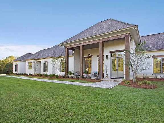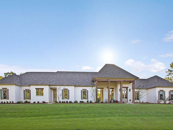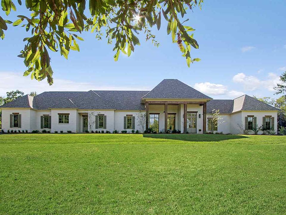 Through the private security gate of this estate in the heart of the city of Madison, you will find a luxury custom built modern ranch style home, sitting on 10+ acres, with features for all to enjoy from the beautiful porches, the entry to the large living areas and a dream kitchen. This chef's kitchen features a full Thermador appliance package and plenty of marble-topped counters for prepping or for entertaining. An amazing keeping room with vaulted ceilings and a fireplace sits directly off of the kitchen. Natural stone counters and hardwood floors flow throughout this home with a gorgeous lighting package which creates an ambiance of grandeur but transitional in style. The 4,121 square feet home has an open floor plan in the entertaining areas, and the master is split on one side of the home away from the other four bedrooms. You will never see another master suite like this one! Extra-large laundry, media/fitness room, and plenty of space in the three-car garage. Come view this beautiful property nestled on 10+ super private acres with a stocked pond and a south-west facing treed backyard, you will have plenty of beautiful mornings and evenings to enjoy especially on the covered outdoor porch spaces. This is a stunning, must-see estate that is ready for family fun and entertaining!