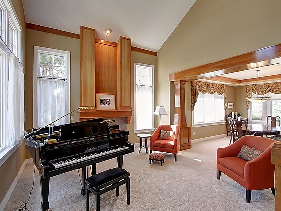 Stunning single-family home backing up to Eagle Trace Golf Course w/ BREATHTAKING VIEWS OF THE MOUNTAINS! This custom-built 5 bedroom, 5 bathroom home offers a formal Living Room w/ gas fireplace, formal Dining Room, Study w/ French doors to front porch, Family room w/ gas fireplace, & gourmet kitchen. Kitchen features large island w/ granite-slab countertop, stainless steel appliances, & large casual dining space w/ MOUNTAIN VIEWS. Upper level has Master Suite w/ 5-piece bathroom w/ a deep jetted tub, gas fireplace, & balcony w/ mountain views. Two secondary bedrooms are adjoined by a Jack-&-Jill bathroom. The fourth bedroom has its own bathroom. Amazing finished basement w/ 9-ft ceiling; Great room w/ built-in desk & shelves; Social area w/ wine cellar, wet bar, gas fireplace, & built-in entertainment center; bonus/exercise room; fifth bedroom & full bathroom. Expansive covered back porch w/ grill & outdoor fireplace, looking out to landscaping, golf course fairways & mountains!