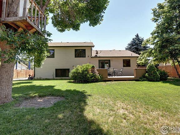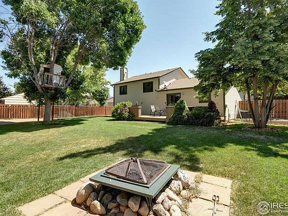 4 bdrm, 2 bath, double car garage tri-level home located in SW Loveland. Features wood flooring in living room & dining area. Vaulted ceilings, wood stove in family room, pantry & all kitchen appliances included. Dining room is open to family room, living room, kitchen & 23 X 13 deck with planter boxes. RV concrete pad & parking. Fully fenced large backyard with sprinkler system & storage shed. NO HOA.