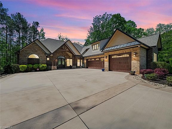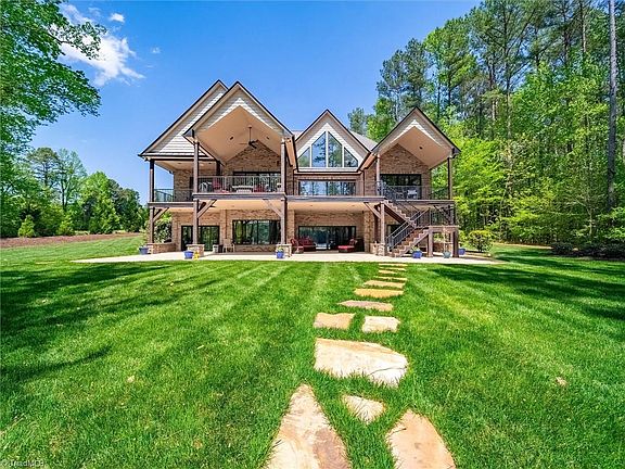 Stunning Waterfront Home w/Panoramic Lake Views, featuring a walk-out finished basement located in Sunset Pointe, a gated waterfront community w/amenities. This spacious home features 5 Bedrooms, 4.5 Baths, a finished bonus rm perfect for additional living space or guest suite. The chef's kitchen is a showstopper, complete w/wolf, sub-zero, cove appliances and custom cabinetry w/high end finishes. The main level and bonus rm showcases rich wood flooring throughout, opening up to expansive covered porches and patios perfect for soaking up the lakefront views and sunsets. Downstairs, a walk-out finished basement offers endless possibilities for relaxation or recreation and still room for storage. Enjoy direct lake access w/237' of waterfront, private dock, boat lift, and jet ski ramp surrounded by professionally landscaped grounds. A spacious 3 car garage provides plenty of storage for vehicles and lake toys alike. High Rock Lake is the 2nd Largest Lake in NC w/ 365 miles of shoreline.