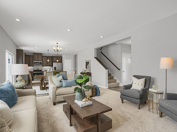 Welcome to the Canton! This home has a total of 2701 sq ft across three finished levels. As you enter the home from the covered from porch through the foyer you will find a flex room- the perfect space for a home office, kids play room and more. The rest of the main level boast a cohesive family room, dining area and welcoming kitchen. Off the kitchen is the mudroom, main level powder room and garage entry. The garage is an extra wide 2.5 stalls with space for a third smaller car or storage area. This home is complete with a finished walk out basement that offers a 4th bedroom, a rec room that is great for an additional gathering area, full bathroom and large storage space with additional W/D hook up.