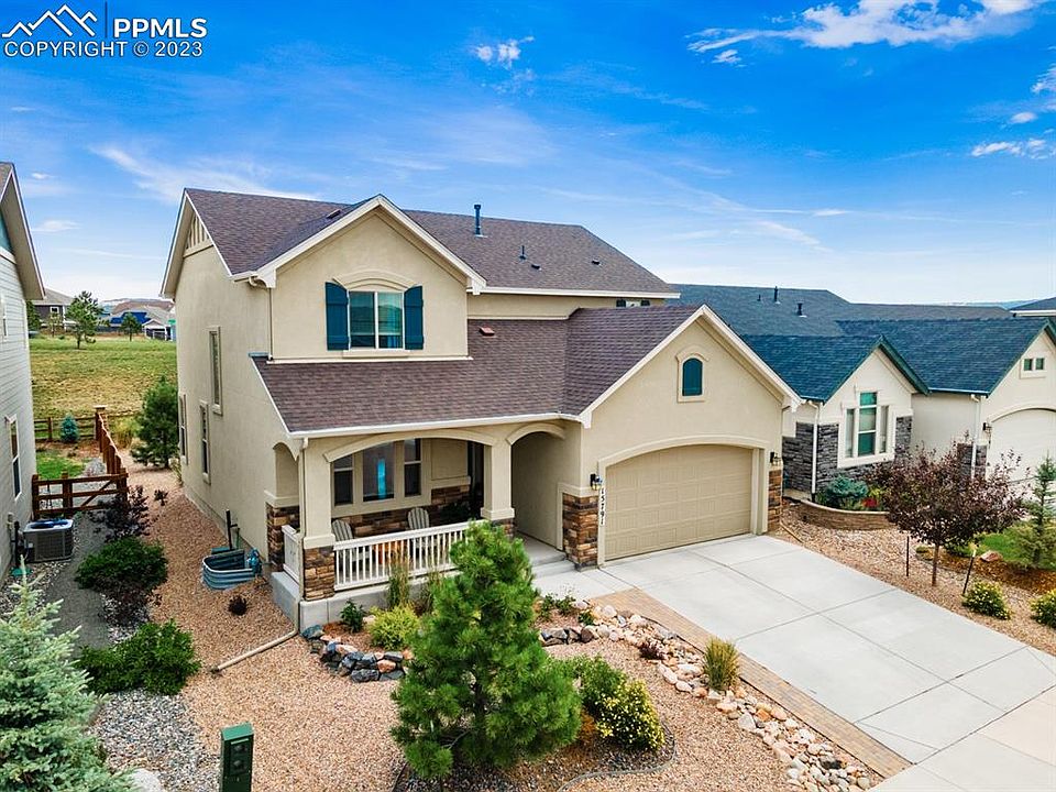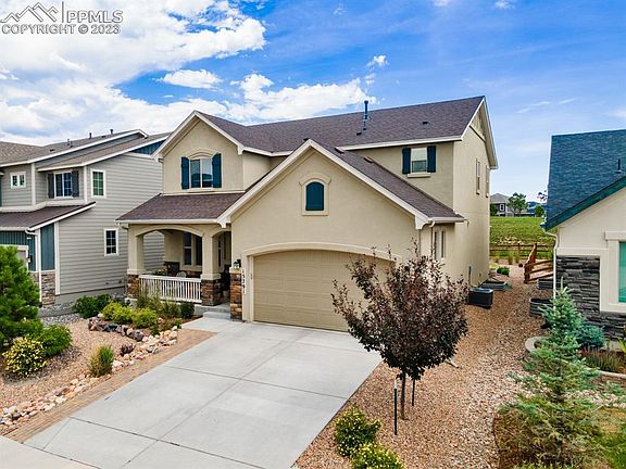 Nestled amidst the foothills, just west of I-25, stands an enchanting Classic Home Sierra floorplan, awaiting its new owner with open doors. Here in the highly sought after Forest Lakes Community time seems to slow down; with 2 community-maintained lakes it offers tranquil spots for fishing, thanks to the HOA's thoughtful stocking of trout for catch and release. The main level greets you with a large office with french door and flows to an open concept great room inviting the sunlight to fill the space through its large windows. Backing to green space with picturesque mountain views, one can easily fall in love. The kitchen is adorned with quartz countertops, soft close antique white maple cabinets and modern stainless-steel appliances. A walk in pantry, island and separate coffee bar that sits off the dining area makes cooking and entertaining a dream! Outside, the landscaped backyard beckons with the shelter of a covered patio and stunning Mountain peaks. Ascending to the upper level a spacious loft welcomes you with ample opportunities and leads to the exquisite primary retreat, a haven of rest and luxury with its attached bath. The bathroom, a place of indulgence, features a double sink vanity, luxurious shower with a bench and separate throne room. A large walk-in closet and linen closet adds practicality to this oasis. Two more spacious bedrooms, each with their own Mountain views enjoy a full bath to complete this level, not to mention the convenience of a sizable laundry room. In the basement with its impressive 9-foot ceilings, a world of possibilities unfolds. Currently used as the family theater room, the large rec room gives you a taste of the fun to be had here. The space is adjoined by two generously-sized bedrooms, one of which is used as a home gym and the other just off a full bath & hosts a walk in closet. Big Truck? No problem! Park it safely inside with the 21 foot deep garage!