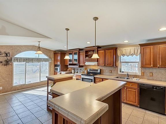 Bring your horses cows goats! Watch some stunning sunsets over your property! The home is actually a TRIPLE wide - and has the feel of open concept living! With 2 living areas a 2 sided fireplace and 2.5 bathrooms! This property has over 900 ft of road frontage! You are fortunate to have a tank down in the valley for your livestock. The property features 2 barns - 1 with electric run. The hay pasture is a blend of coastal and bermuda. The views go on forever. Sellers currently raising exotic breed deer - pens already in place for your animals! This is a well placed beautiful property - You already have a great start! Come see today!!!