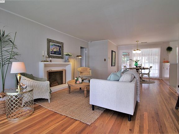 This 1946 quintessential Village Home exudes yesteryears' charm and detail. Features of the home include three great size bedrooms, one full bath, attached one car garage with 1062 square feet of living space situated on a 6528 square foot lot with side access. Once inside, you are greeted by beautiful original hardwood floors, picturesque wood burning fireplace with custom surround, and original floor to ceiling living and dining area windows. Spacious front facing primary bedroom with his/her closets and its own floor to ceiling window. Other details include fresh paint throughout interior/exterior, new linoleum flooring in the open concept kitchen . Spacious backyard with mature lemon/orange trees. Walking distance to shopping, dining, library and transportation.
