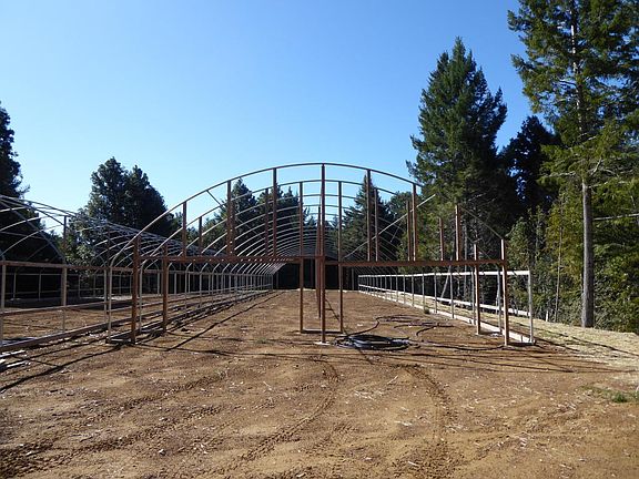 Excellent ON GRID cannabis property. Perfect climate for producing quality cannabis year-round. Permit for 600 amps/3 phase power. Interim permit in hand for 10,000 sf mixed light and 6,000 sf outdoor. State permit pending. Two 30 X 150 steel frame greenhouses on site. 2 wells, one 10 gpm, the other 15 gpm. Solar pumps. Twenty 4600 gallon water tanks plumbed and full. Future timber (redwood). Great neighborhood, good neighbors. Easy gated access minutes from Whitetorn.