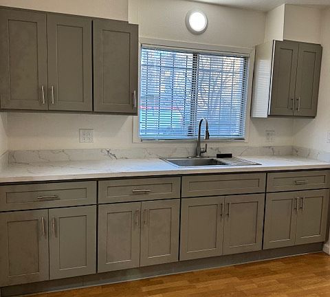 Renovated corner lot home in San Leandro! Freshly painted throughout! New kitchen cabinets with granite countertops! 2bedrooms and 2 full bathrooms! Garden window in kitchen for extra view! 2 parking spaces assigned! Security bars in windows! Walking distance to grocery stores, mall, cinema, Bart and ac transit. Black iron gate for extra security and off-street parking. Inside laundry hookups! Easy access to 580 and 880 freeway! Renter's responsible for all utilities! No pets allowed!