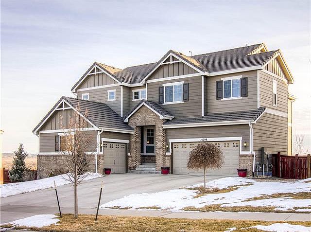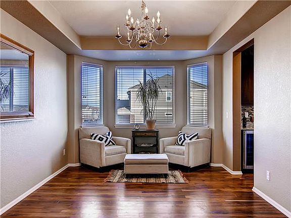 Gorgeous home with lots of upgrades. This two-story walkout is on a large corner lot backing to open space and showcases a beautiful mountain view. Gourmet kitchen with stainless appliances, double ovens, five-burner gas cook-top, granite counters, butler pantry with wine cooler, breakfast bar and large eating space. Entire main level features wide-plank, cherry hardwood floors. Large family room with volume ceiling and gas fireplace. Main floor study, laundry and powder room. Upstairs there are
